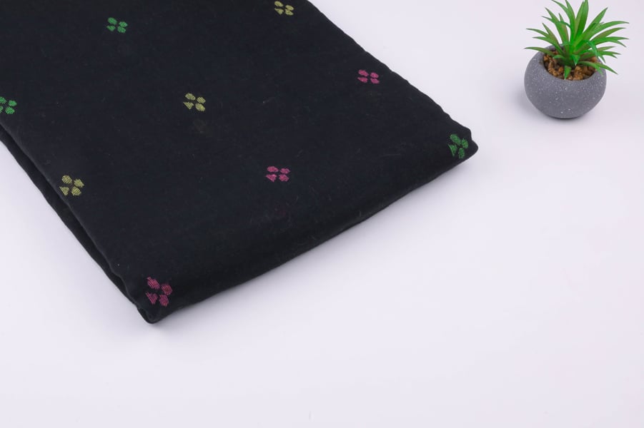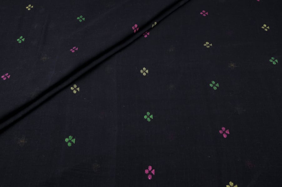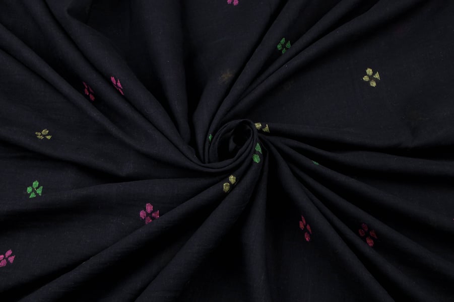 Natural Black Woven Design Flowy HandLoom Pure Soft Cotton Fabric