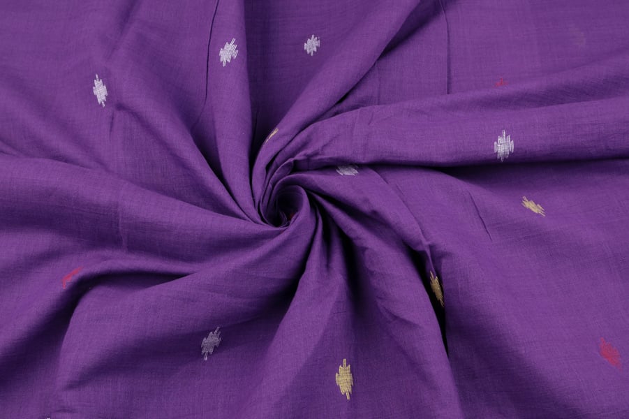 Purple Mercerised Fine Handloom Ikkat Tie-Dye Pure Soft Cotton Fabric