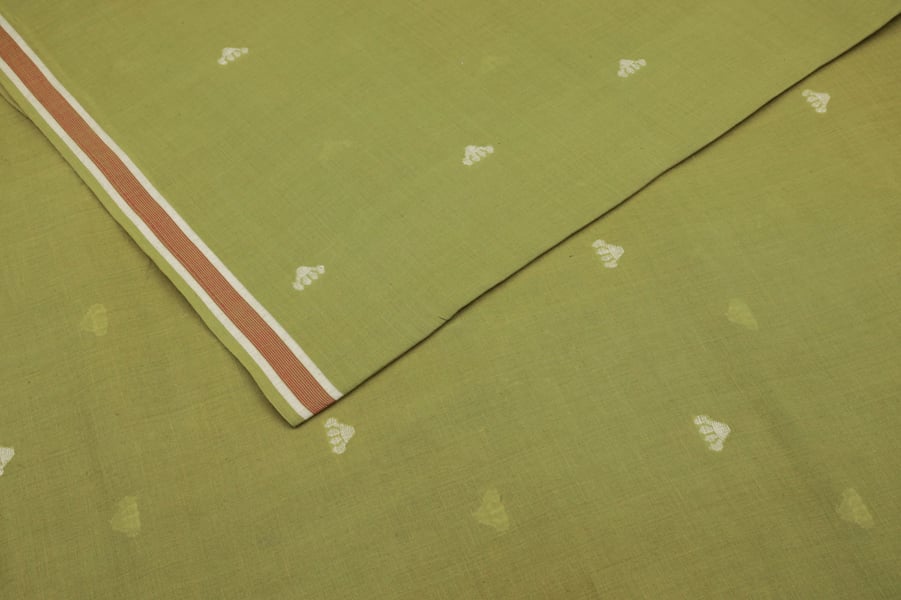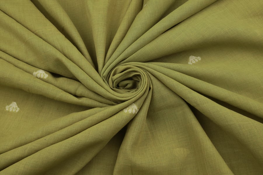 Olive Green Woven Design Flowy HandLoom Pure Soft Cotton Fabric
