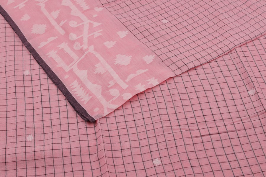 Puce Pink Handloom Jamdani Intricate Border Flowy HandLoom Pure Soft Cotton Fabric