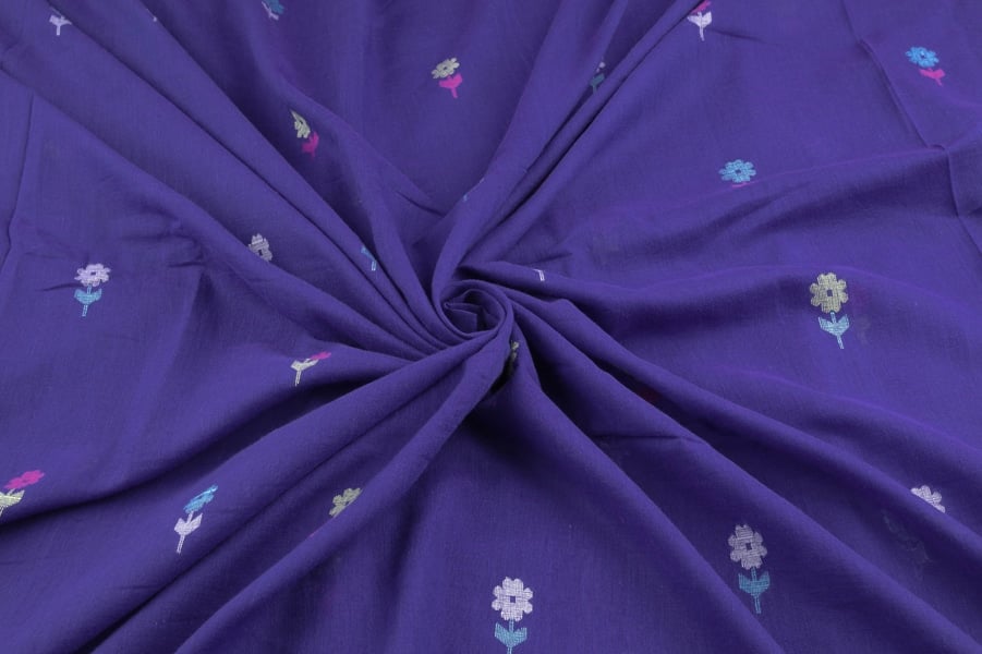 Purplish Blue Woven Design Flowy HandLoom Pure Soft Cotton Fabric