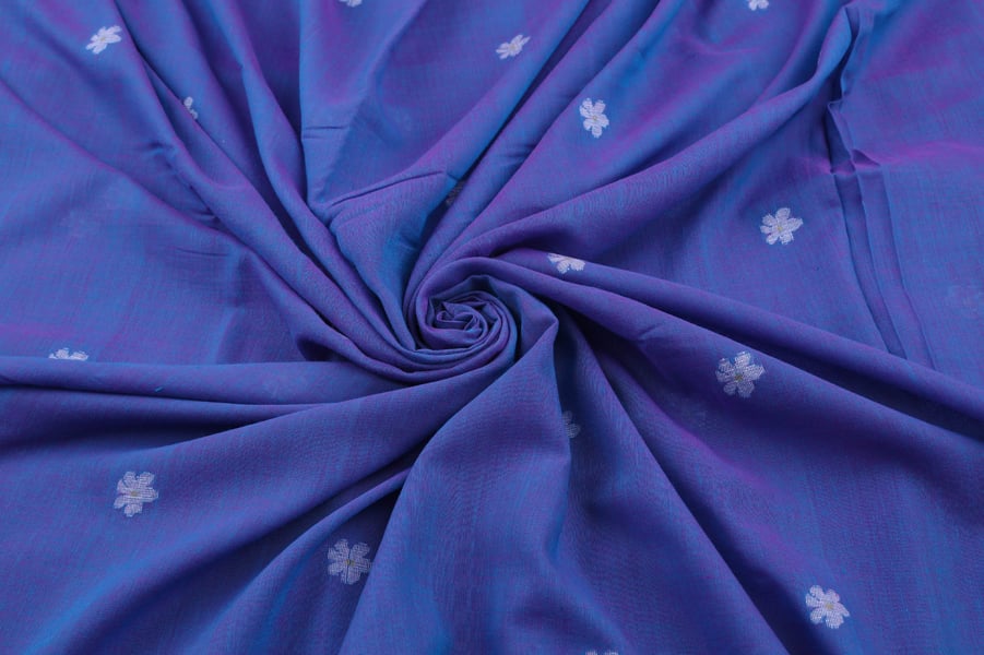 Purplish Blue Woven Design Flowy HandLoom Pure Soft Cotton Fabric