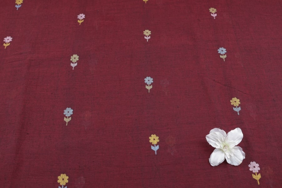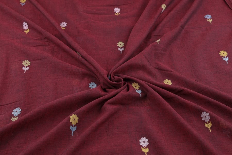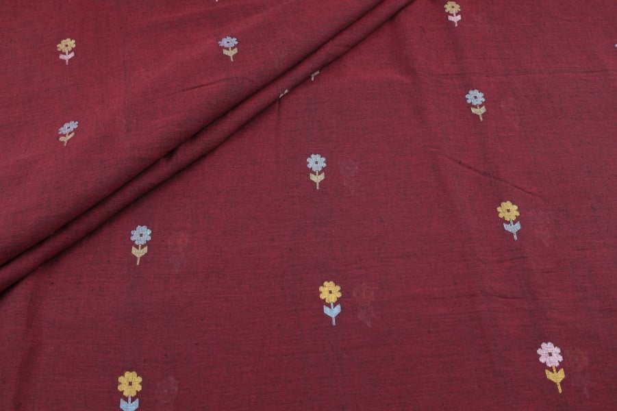 Maroon Red Woven Design Flowy HandLoom Pure Soft Cotton Fabric