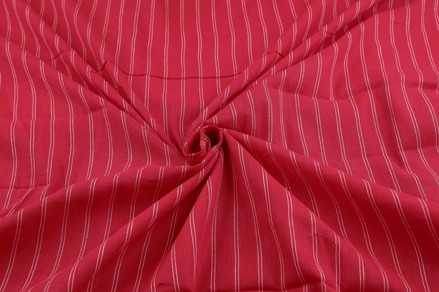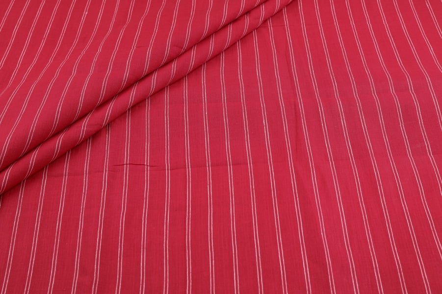 Cardinal Red Flowy HandLoom Woven Stripes Pure Soft Cotton Fabric