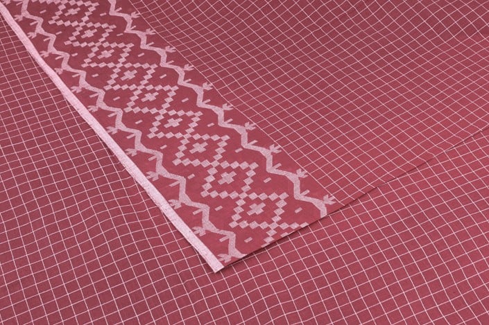 Red – Burnt Rose Red Jamdani Border Cotton Fabric