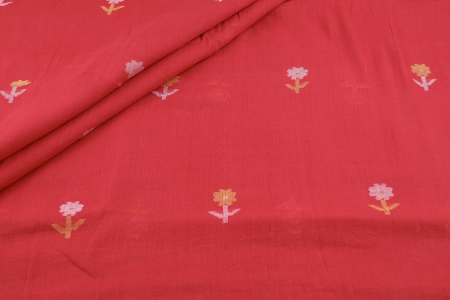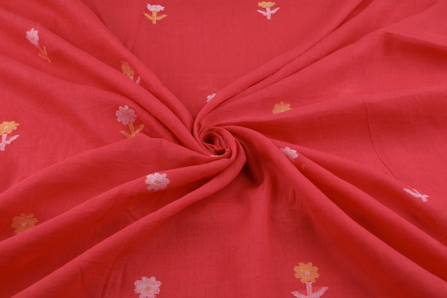 Red Woven Design Flowy HandLoom Pure Soft Cotton Fabric