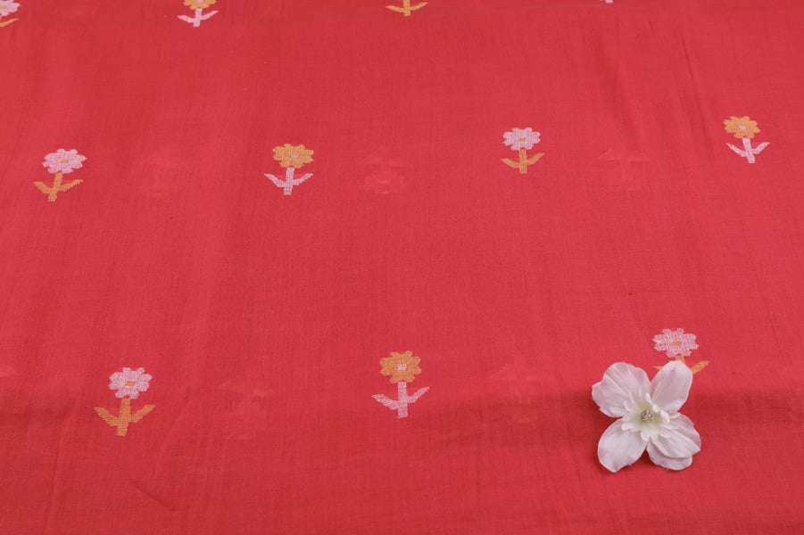 Authentic HandLoom Woven, Eco-Friendly Dyes, Jamdani Flowy 100% Pure Soft Cotton Fabric
