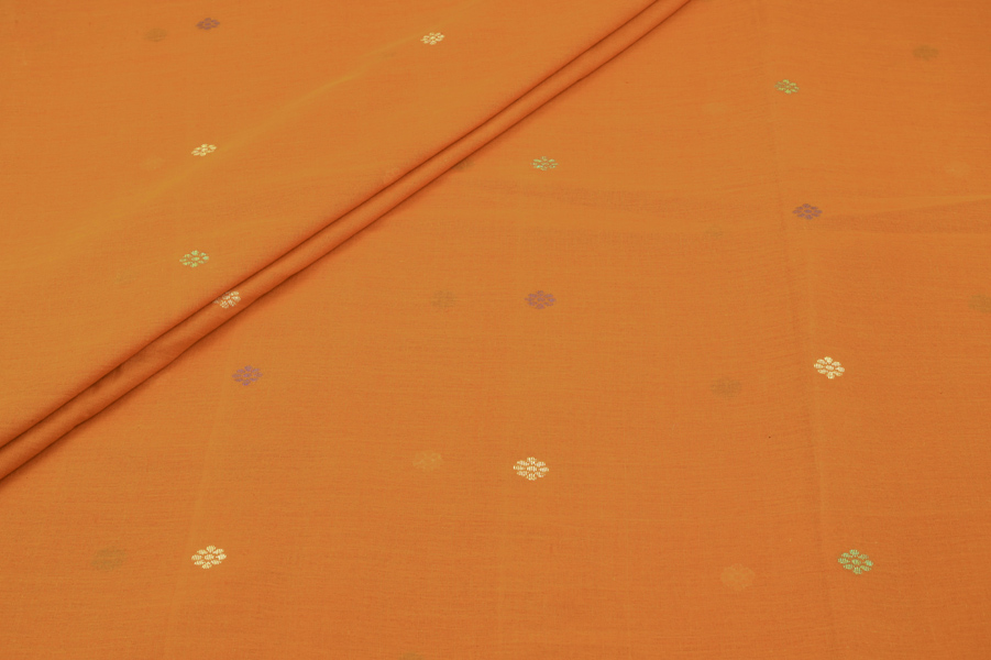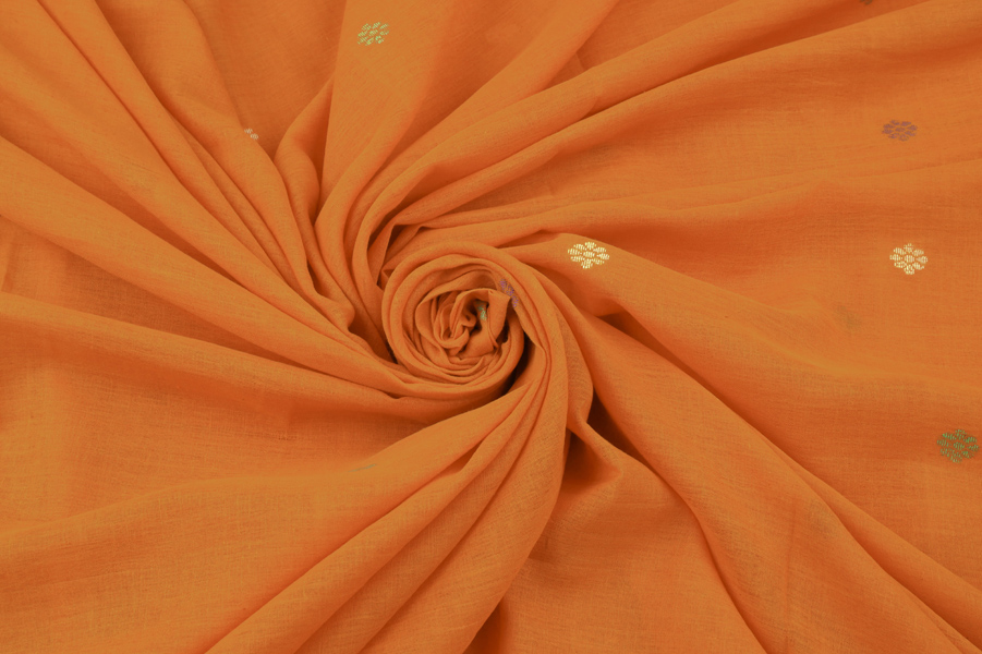 Saffron Orange – Woven Design Handloom Pure Soft Cotton Fabric