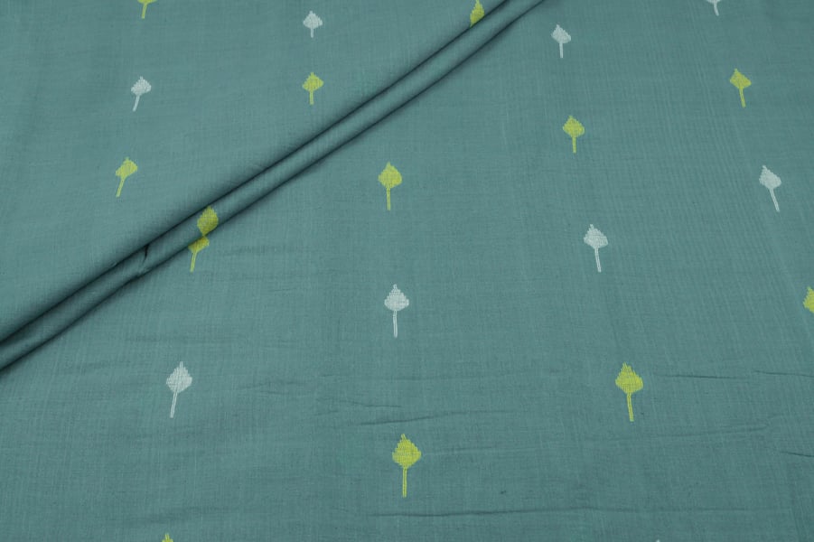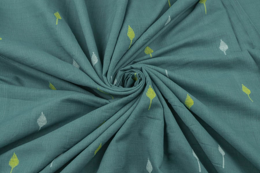 Sage Green Woven Design Flowy HandLoom Pure Soft Cotton Fabric
