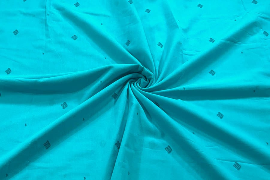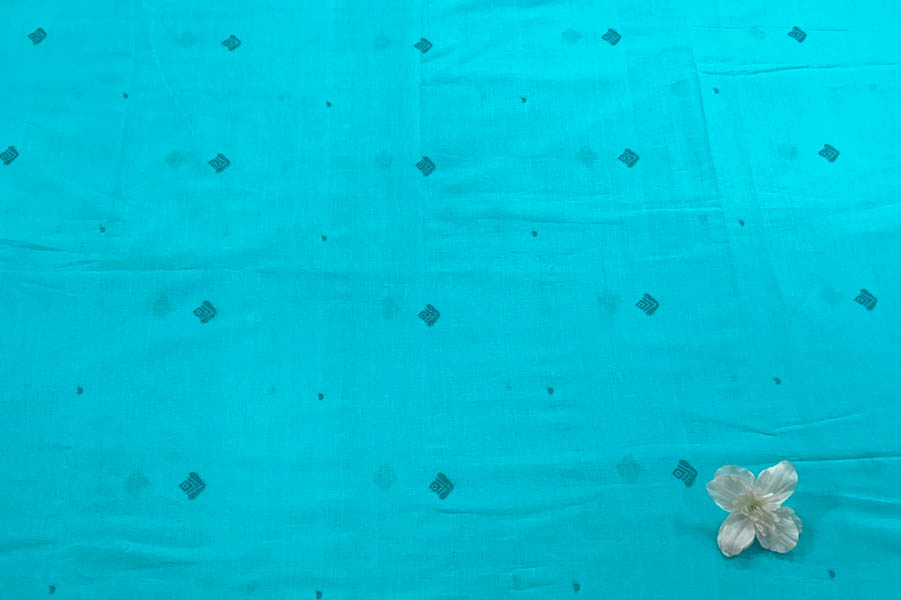 Sky Blue Woven Design Flowy HandLoom Pure Soft Cotton Fabric