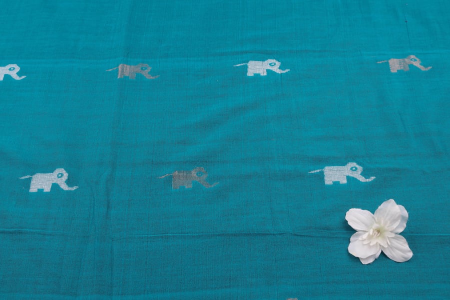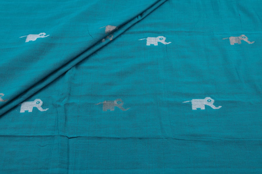 Teal Blue Soft CottonSilk Woven Design Flowy HandLoom Pure Soft Cotton Fabric