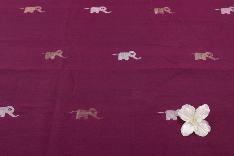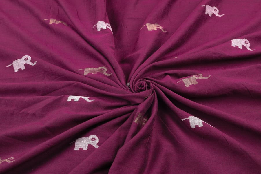 Tyrian Purple Soft CottonSilk Woven Design Flowy HandLoom Pure Soft Cotton Fabric