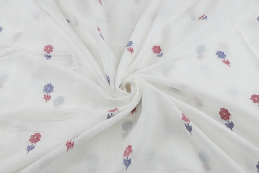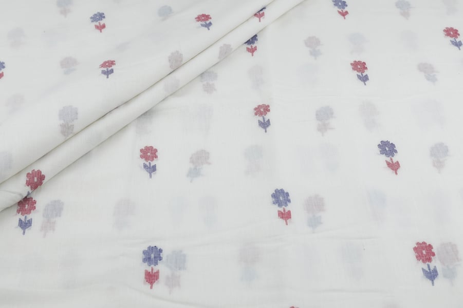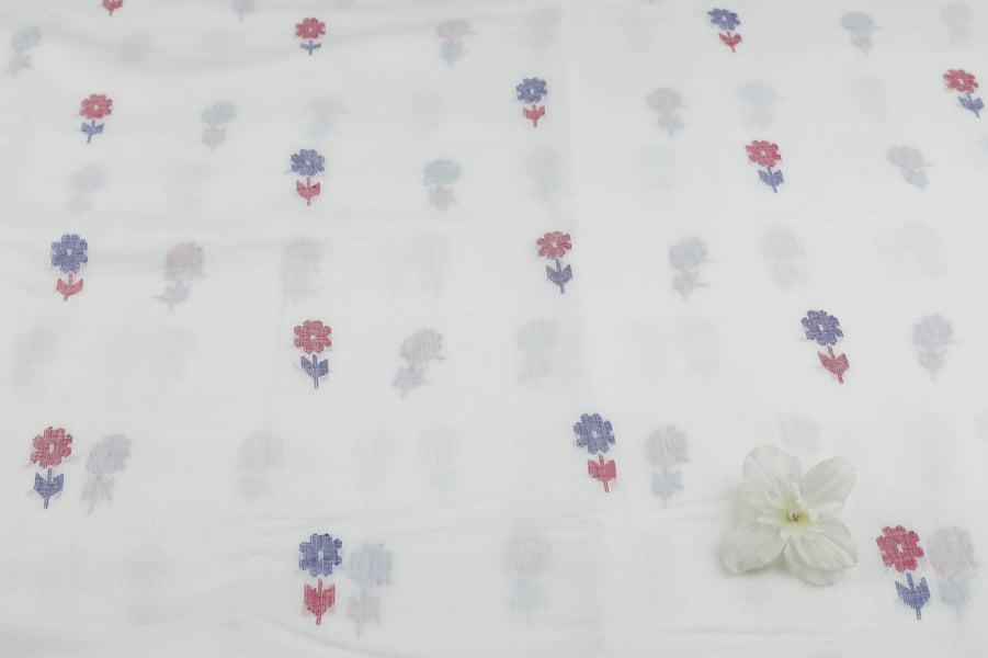 Authentic HandLoom Woven, Eco-Friendly Dyes, Jamdani Flowy 100% Pure Soft Cotton Fabric