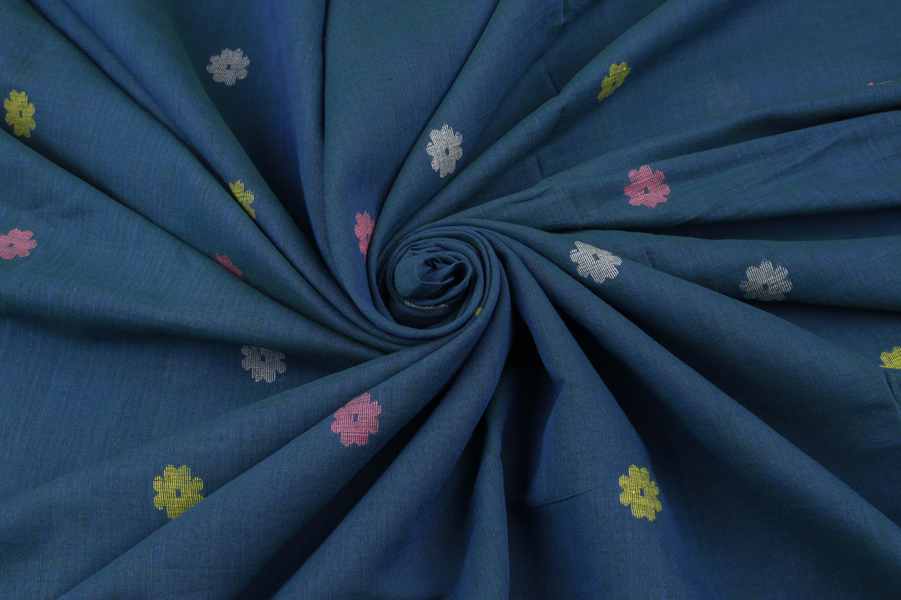 Authentic HandLoom Woven, Eco-Friendly Dyes, Jamdani Flowy 100% Pure Soft Cotton Fabric