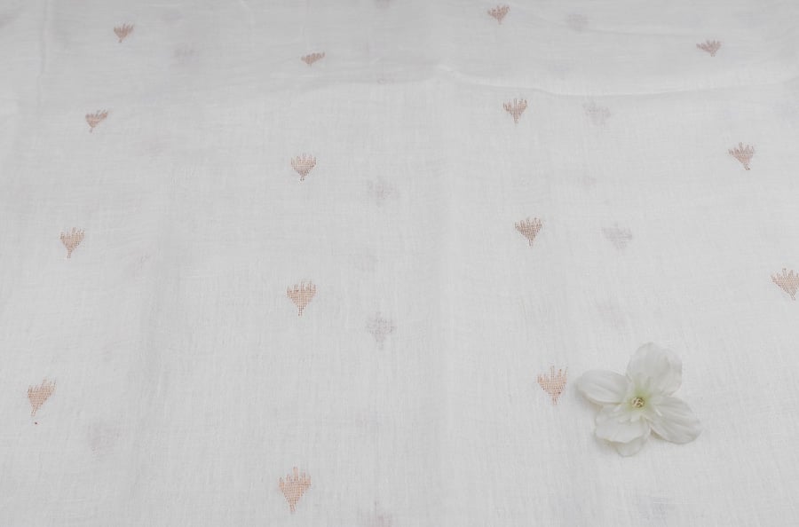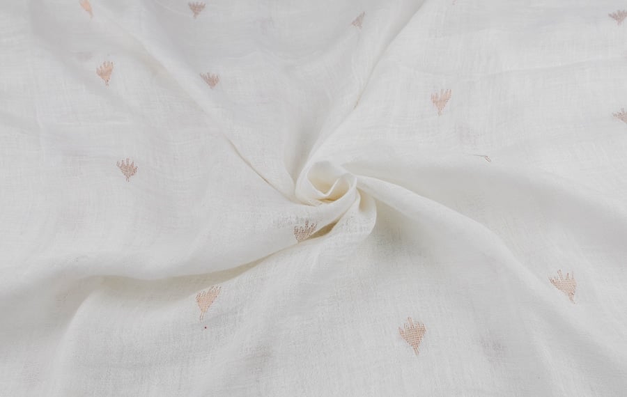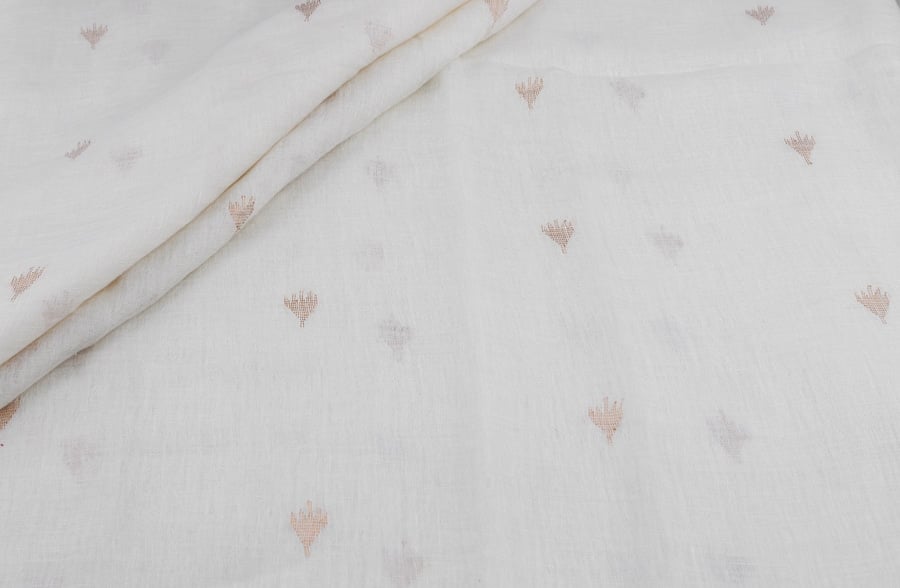 White – Premium Soft Linen Handloom Woven Zari Motif Fabric