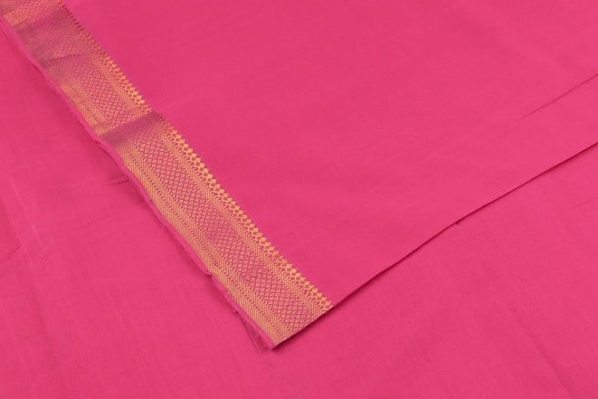 Dark Pink Handwoven Zari Border Pure Cotton Fabric