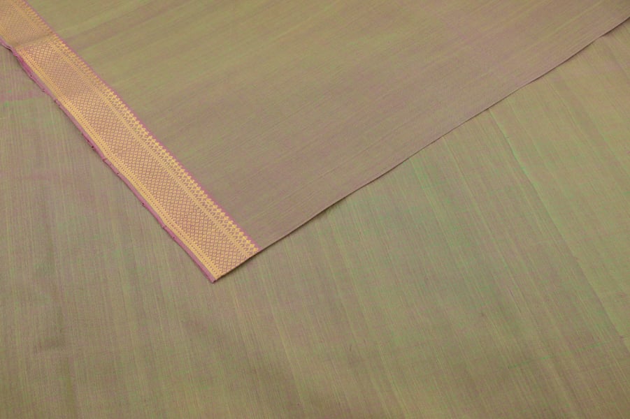 Greenish Tan Brown Handwoven Zari Border Pure Cotton Fabric
