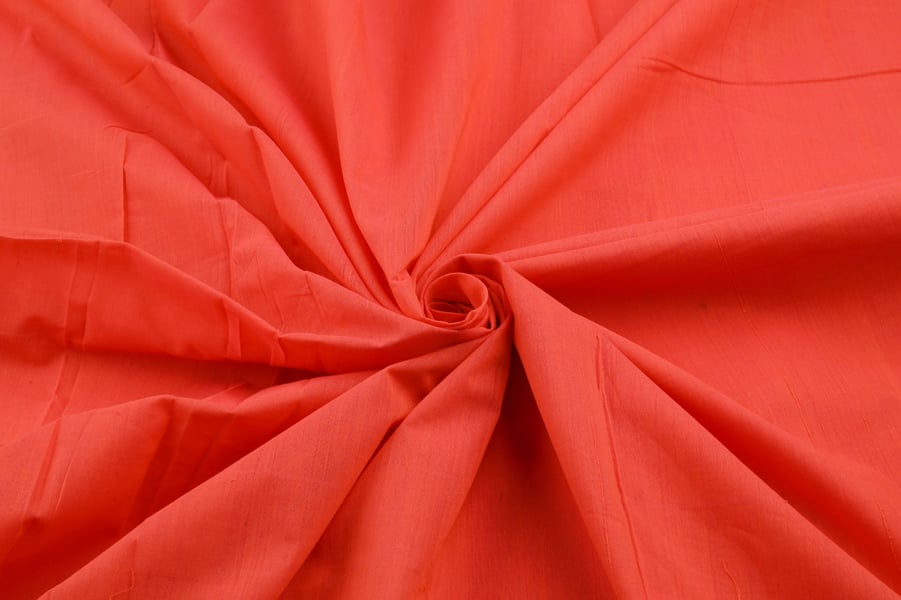 Neon Orange Handwoven Mangalgiri Zari Border Pure Cotton Fabric