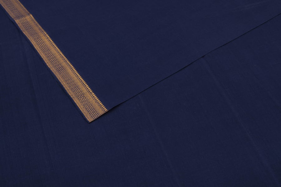 Oxford Navy Blue Handwoven Zari Border Pure Cotton Fabric