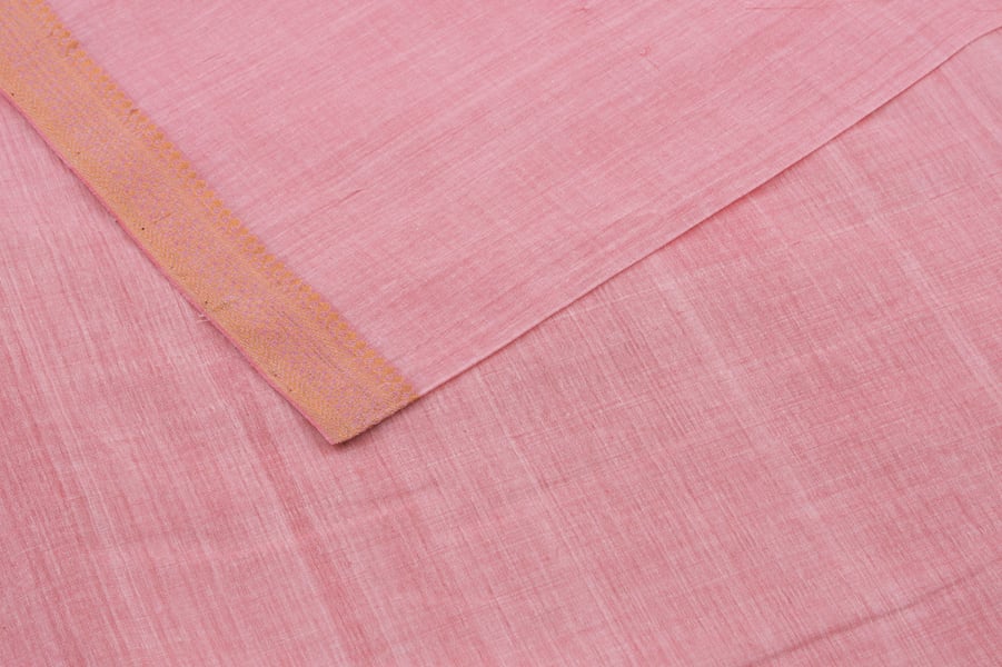 Soft Blossom Pink Handwoven Zari Border Pure Cotton Fabric