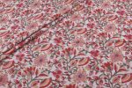 White Antique Rose Floral Handblock Printed 100% Pure Soft Cotton Fabric