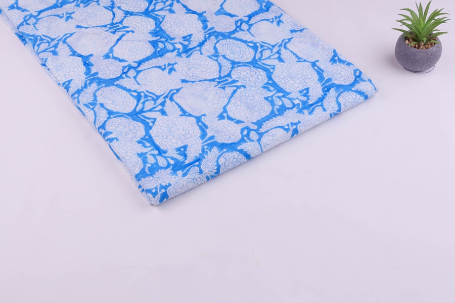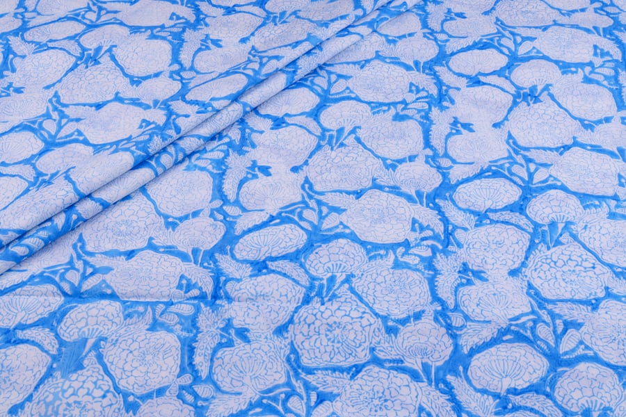 Azure Pure Soft Cotton HandBlock Printed Fabric