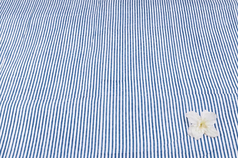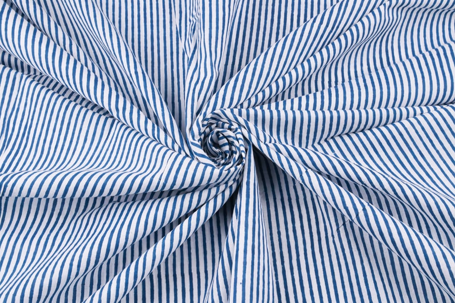 Bahama Blue Stripes Handblock Printed 100% Pure Soft Cotton Fabric