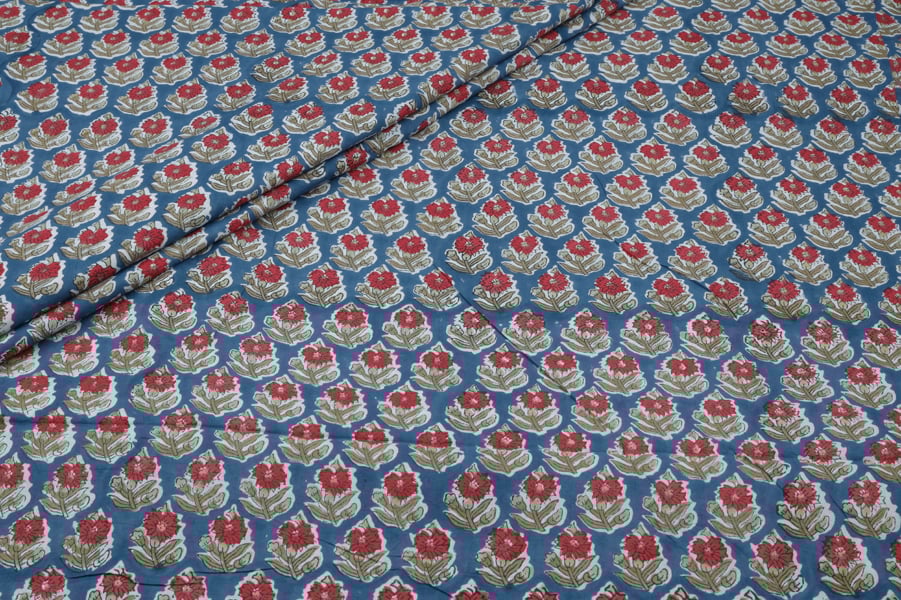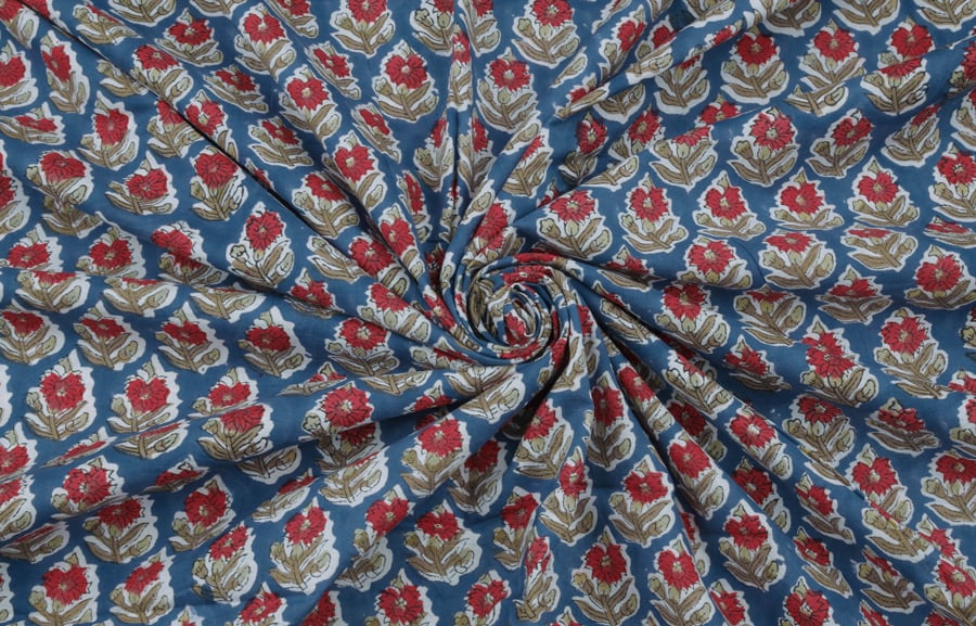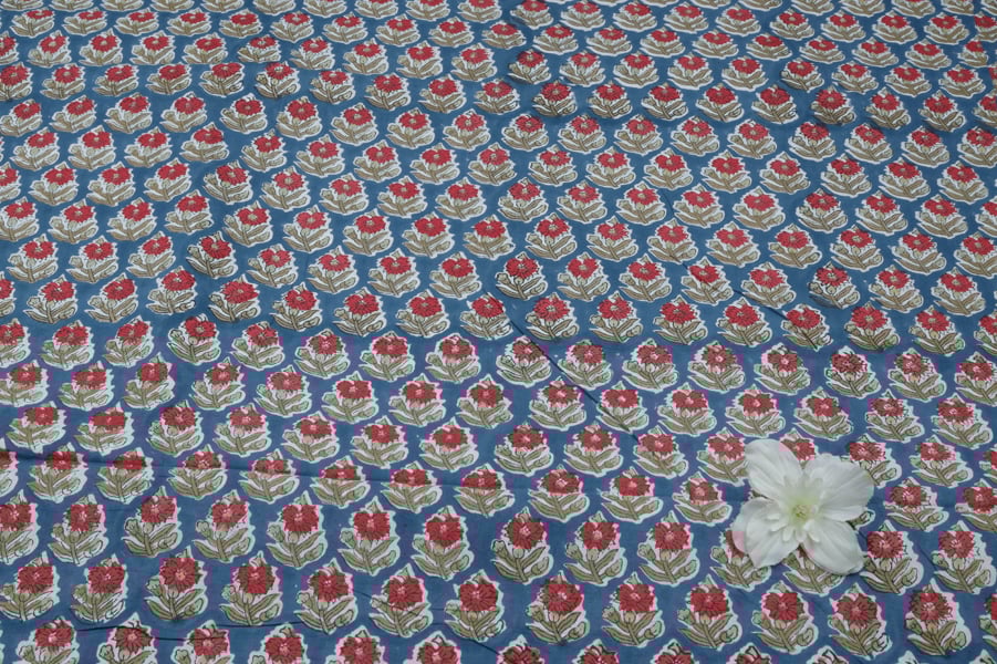 Baltic Blue Blue Floral Handblock Printed 100% Pure Soft Cotton Fabric