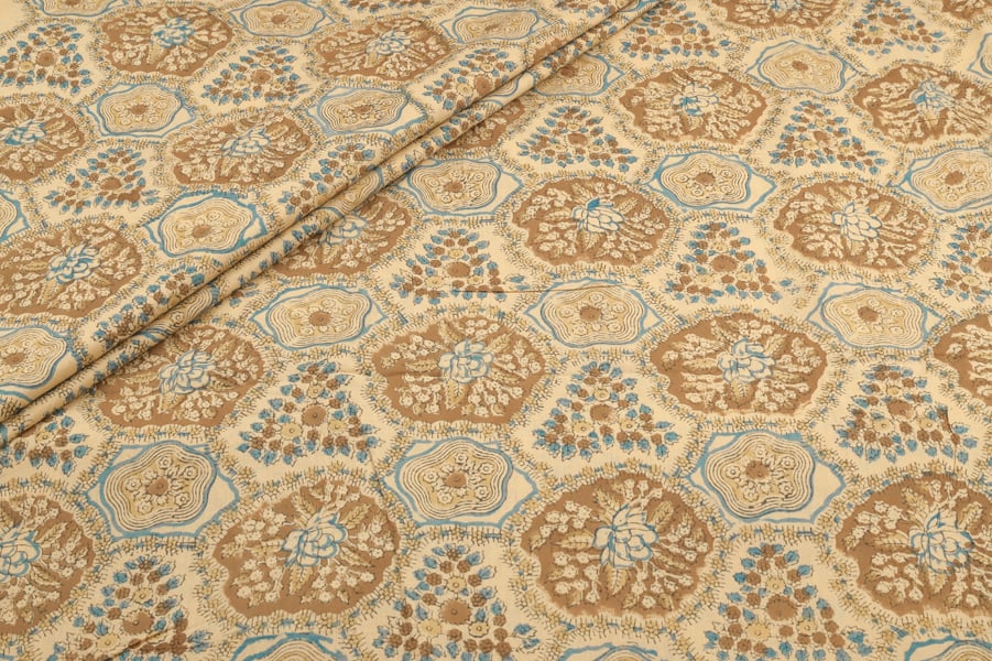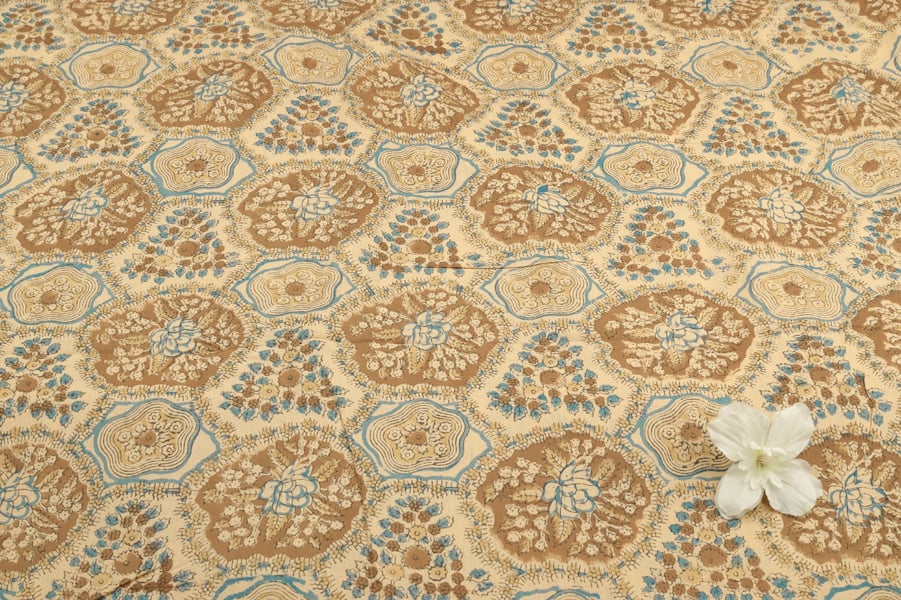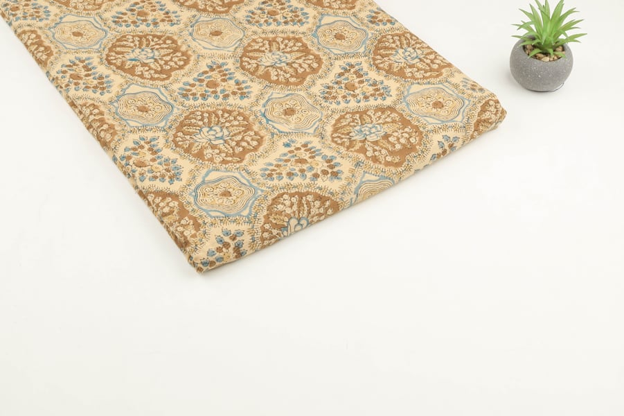 Beige Pure Soft Cotton HandBlock Printed Fabric