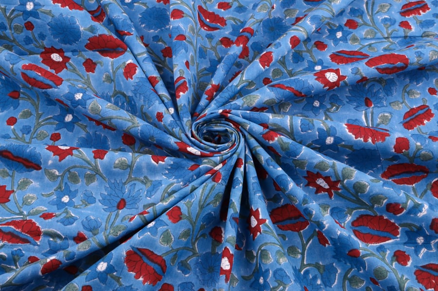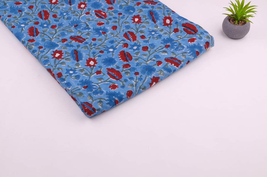 Floral Handblock Printed 100% Pure Soft Cotton Fabric
