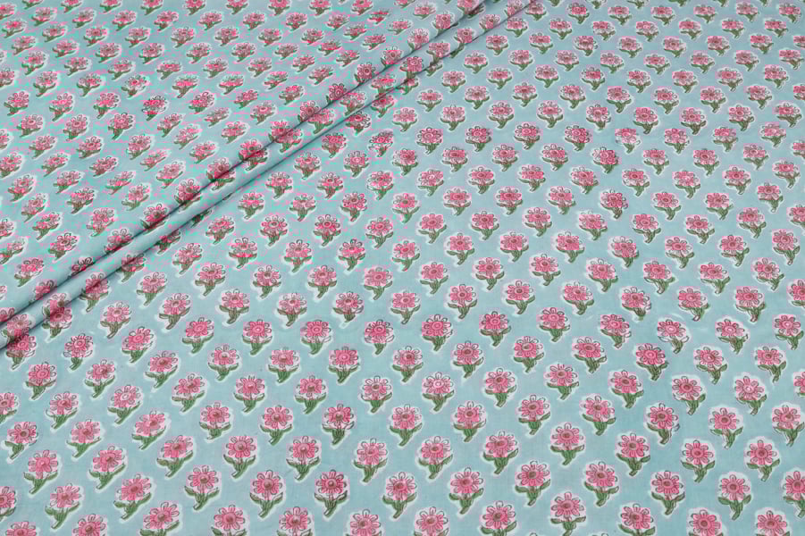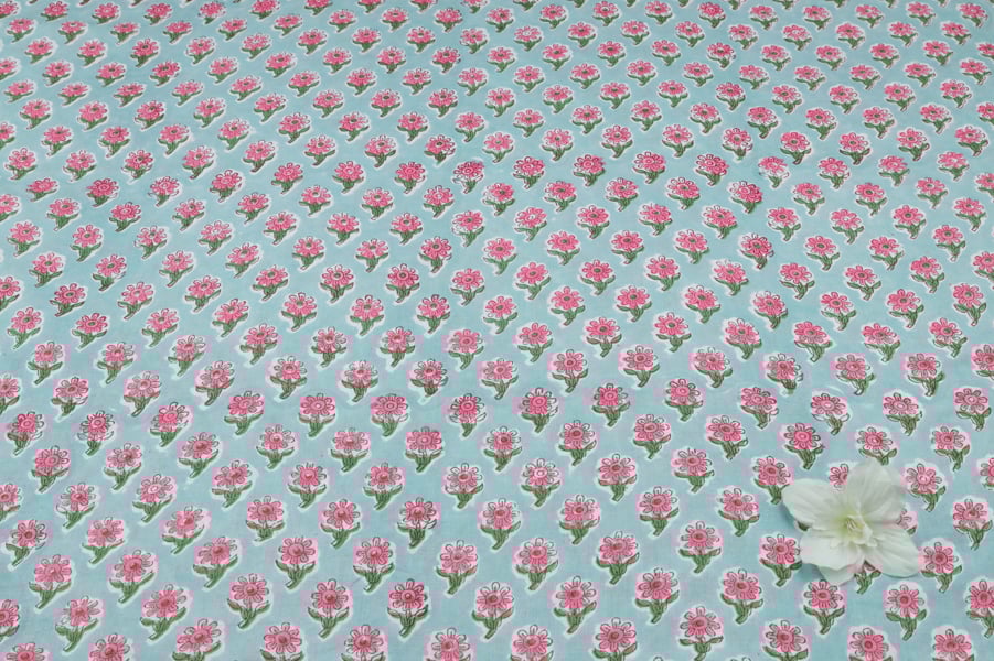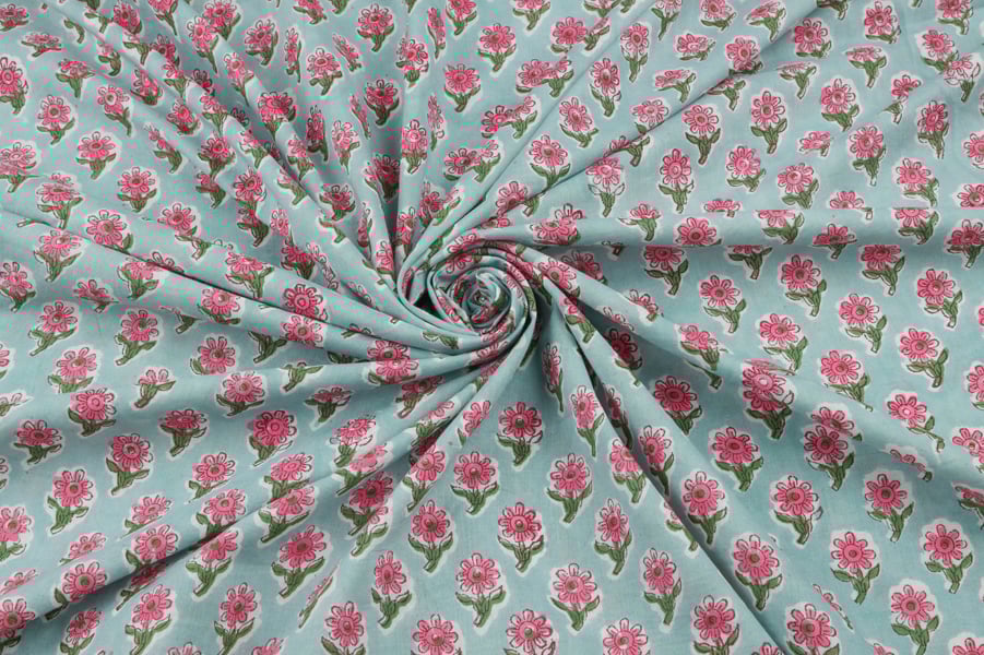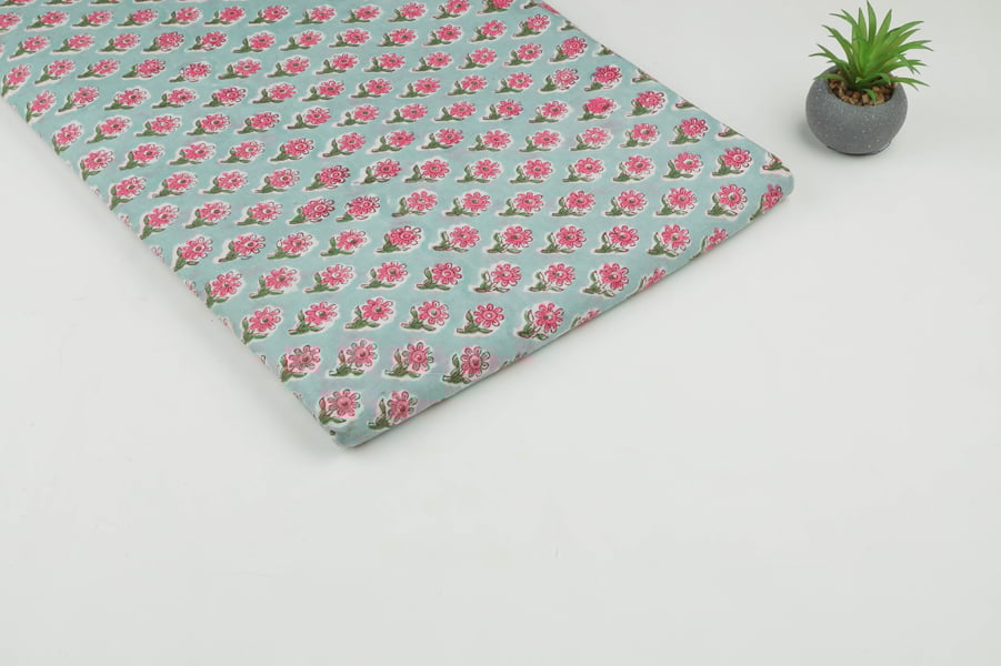 Floral Handblock Printed 100% Pure Soft Cotton Fabric