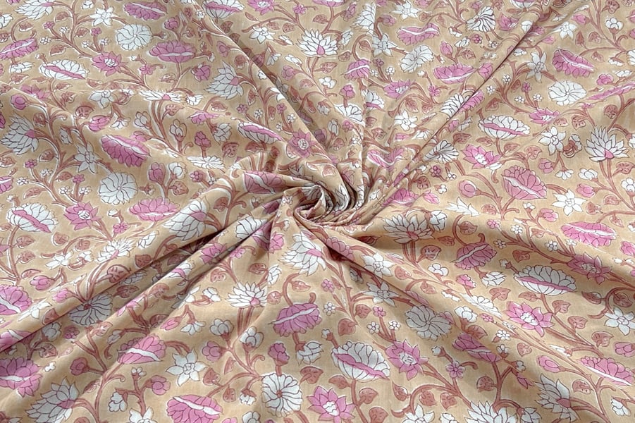 Blush Peach – Floral Handblock Printed 100% Pure Cotton Fabric