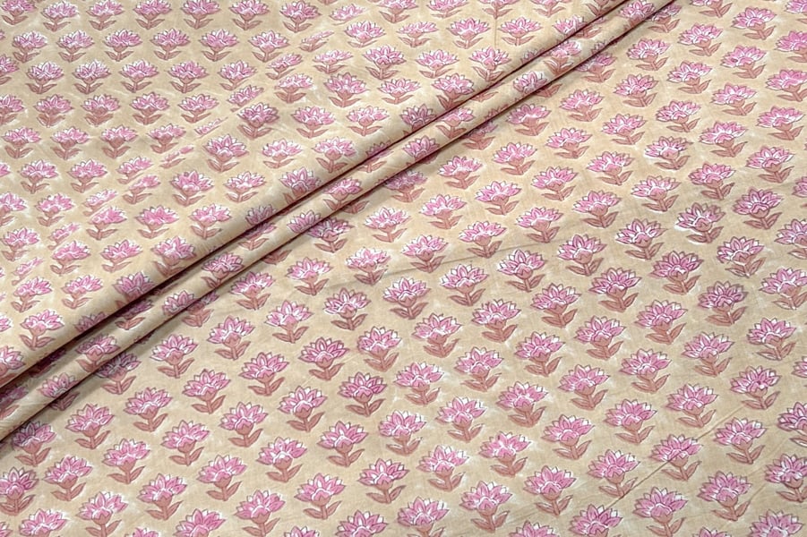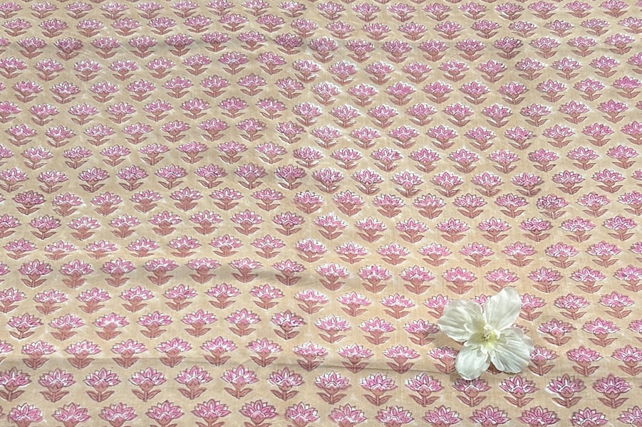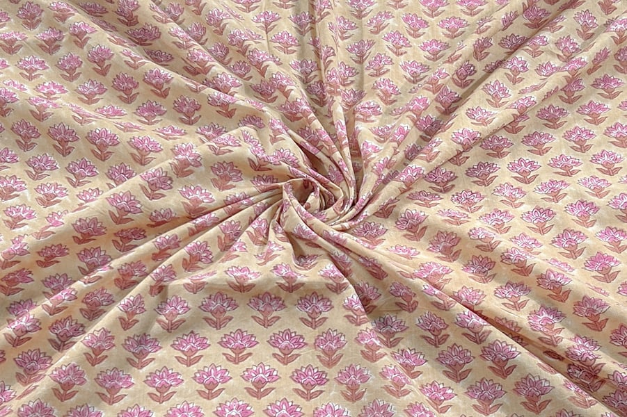 Blush Peach – Floral Handblock Printed 100% Pure Cotton Fabric