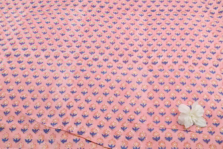 Cotton Pink Pure Soft Cotton HandBlock Printed Fabric
