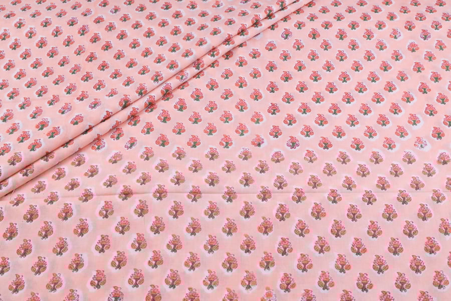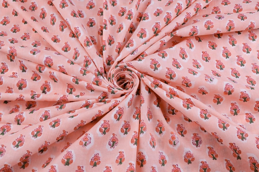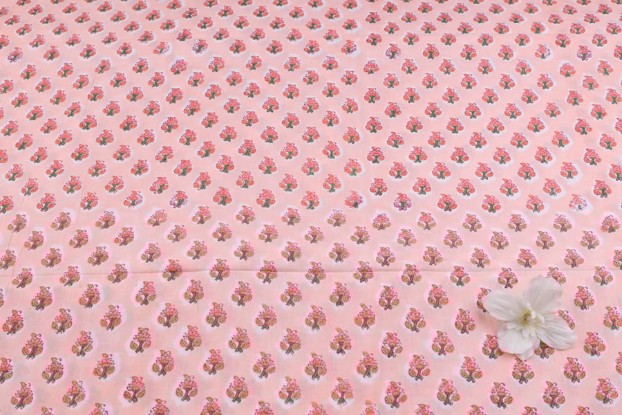 Pinkish Orange Pure Soft Cotton HandBlock Printed Fabric