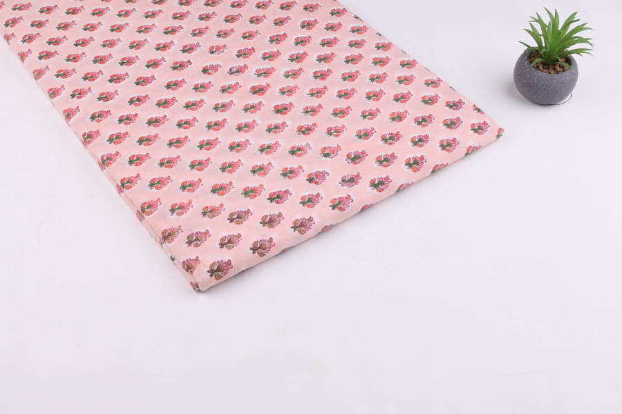 Blush Pink Pure Soft Cotton HandBlock Printed Fabric
