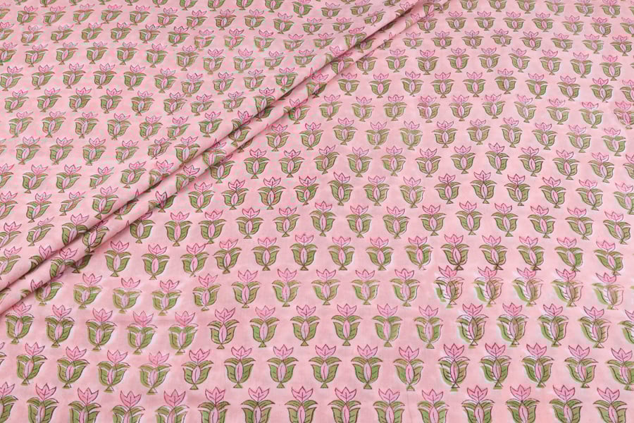 Cotton Pink Pure Soft Cotton HandBlock Printed Fabric