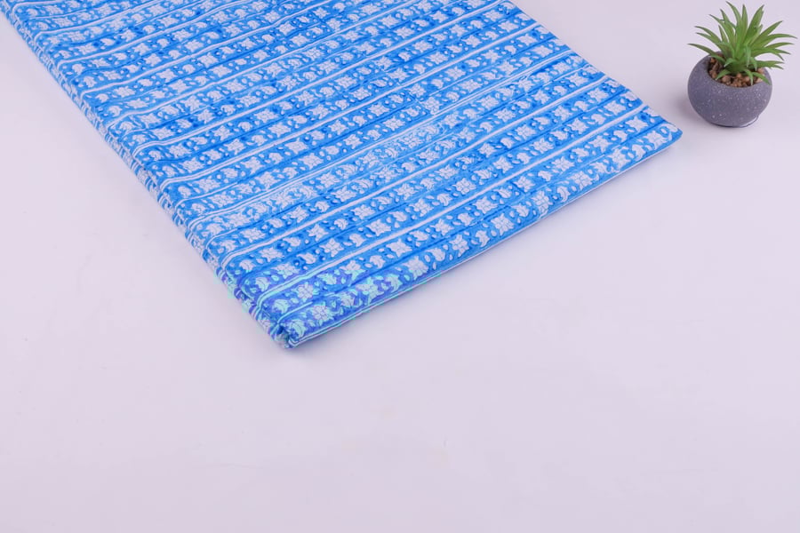Brilliant Azure Pure Soft Cotton HandBlock Printed Fabric