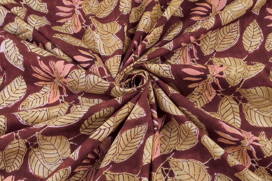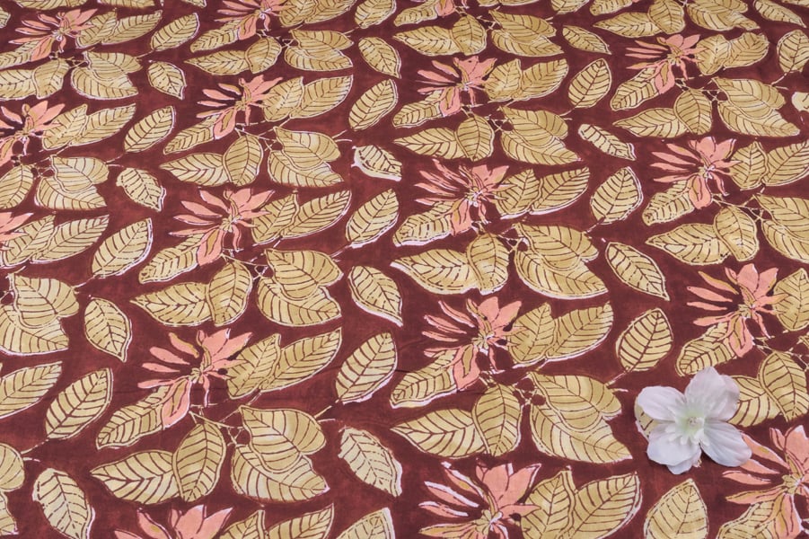 Brownish Red Floral Handblock Printed 100% Pure Soft Cotton Fabric
