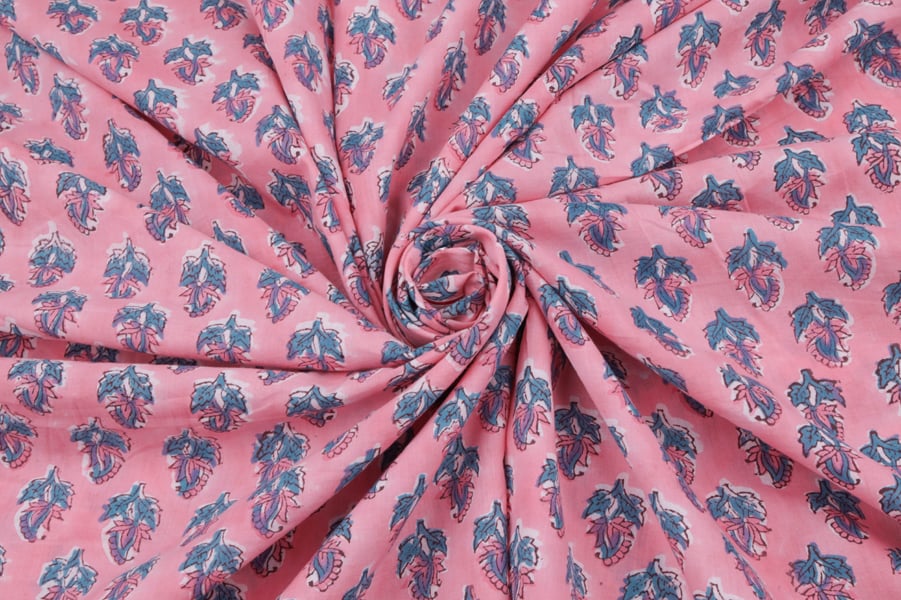 Cherry Blossom Pink Floral Handblock Printed 100% Pure Soft Cotton Fabric