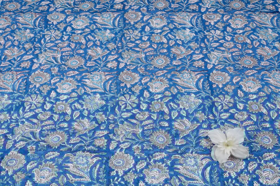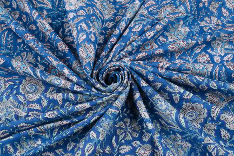 Cornflower Blue – Floral Handblock Printed 100% Pure Cotton Fabric