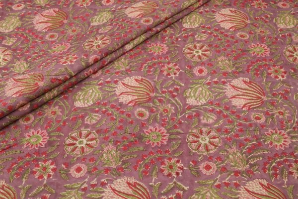 Old Rose Purple Floral Handblock Printed 100% Pure Soft Cotton Fabric