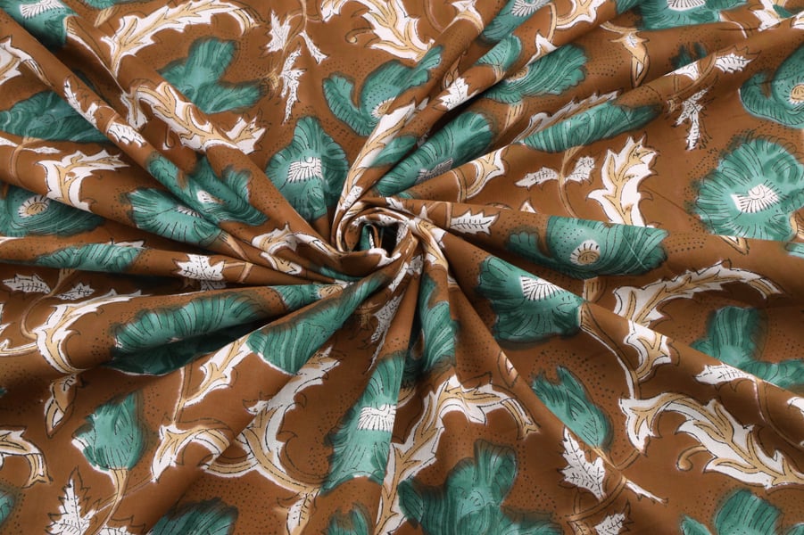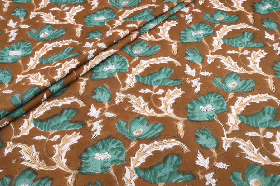 Tan Brown Pure Soft Cotton HandBlock Printed Fabric