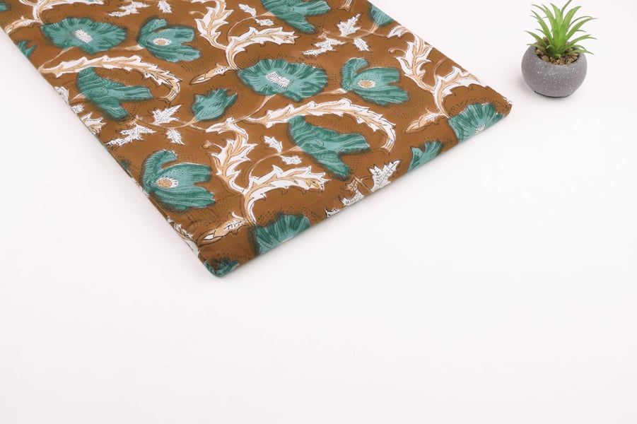 Floral Handblock Printed 100% Pure Soft Cotton Fabric