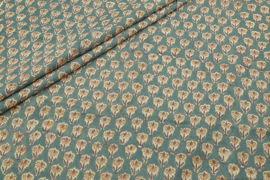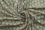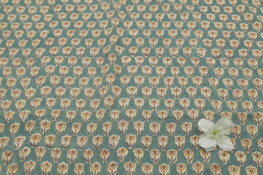 Deep Teal Green Floral Handblock Printed 100% Pure Soft Cotton Fabric