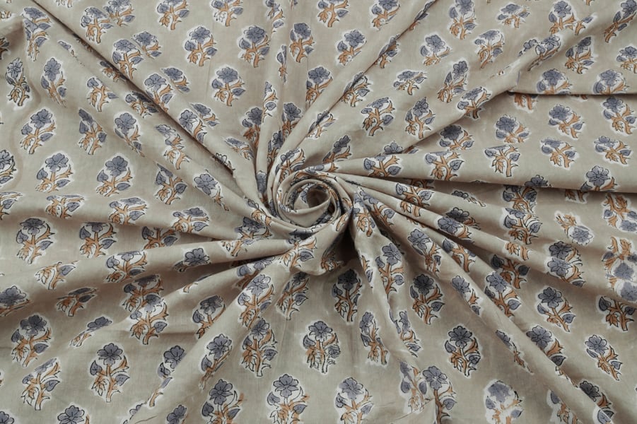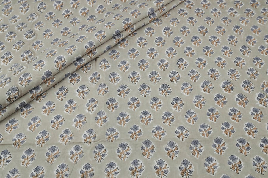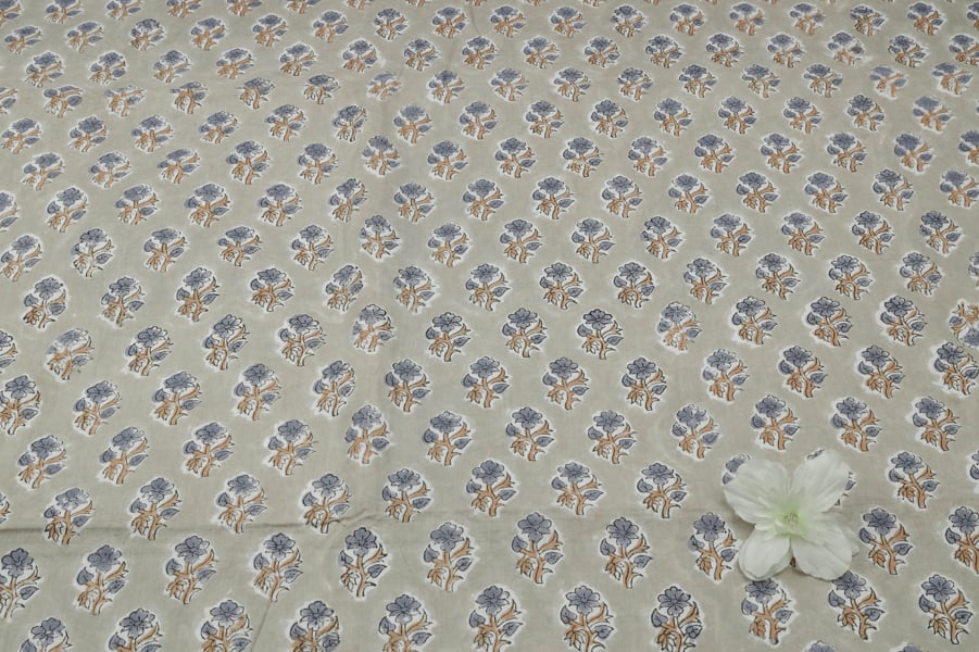 Dust Gray Floral Handblock Printed 100% Pure Soft Cotton Fabric
