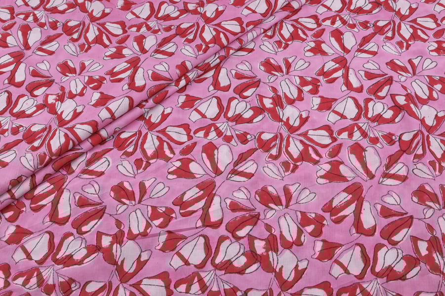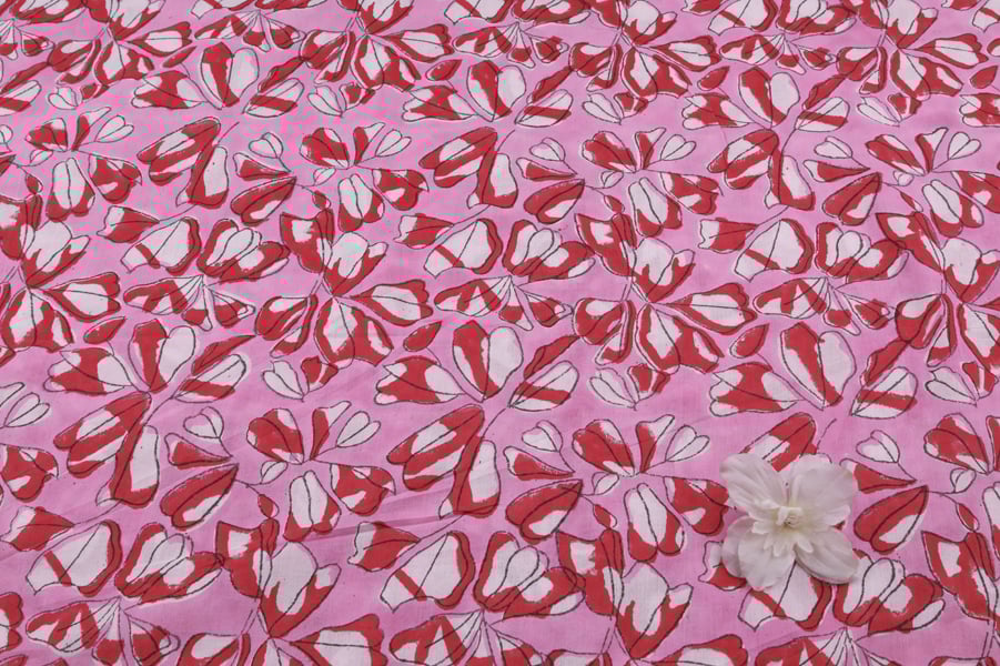 Dusty Orchid Floral Handblock Printed 100% Pure Soft Cotton Fabric