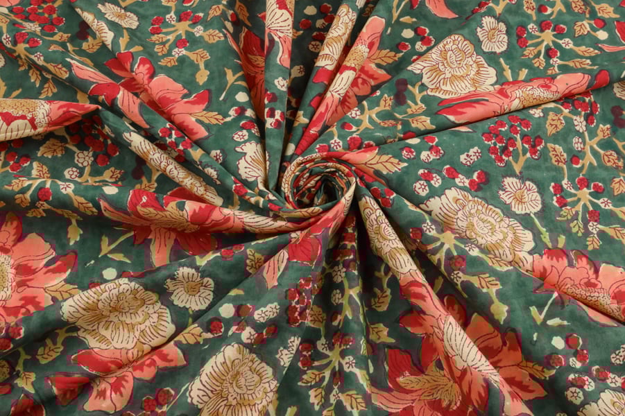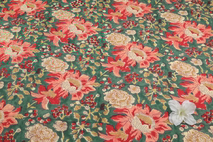 Emerald Green Pure Soft Cotton HandBlock Printed Fabric