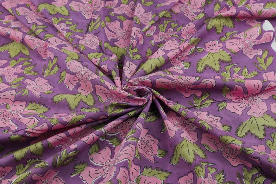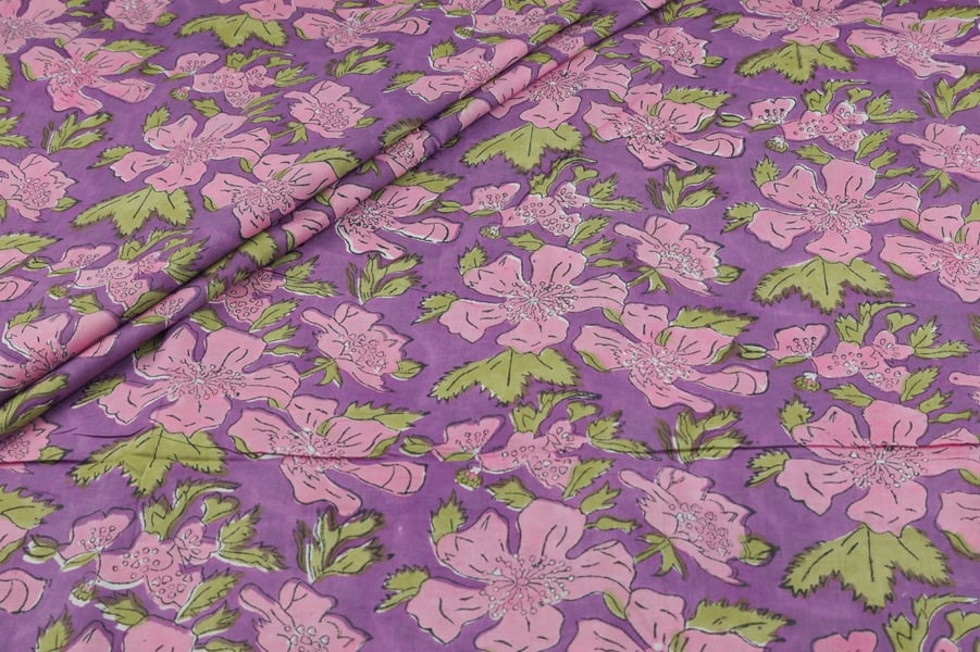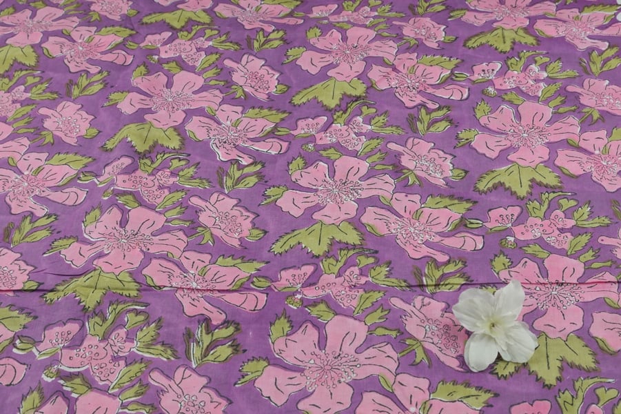 Fuchsia Purple Floral Handblock Printed 100% Pure Soft Cotton Fabric