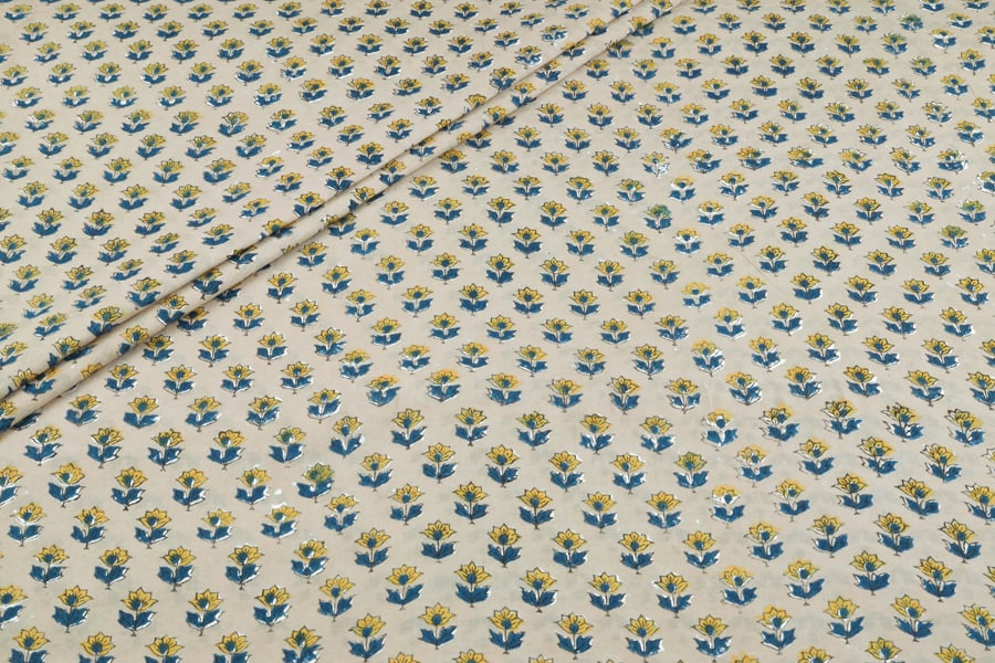 Ivory Mist Yellow Pure Soft Cotton HandBlock Printed Fabric